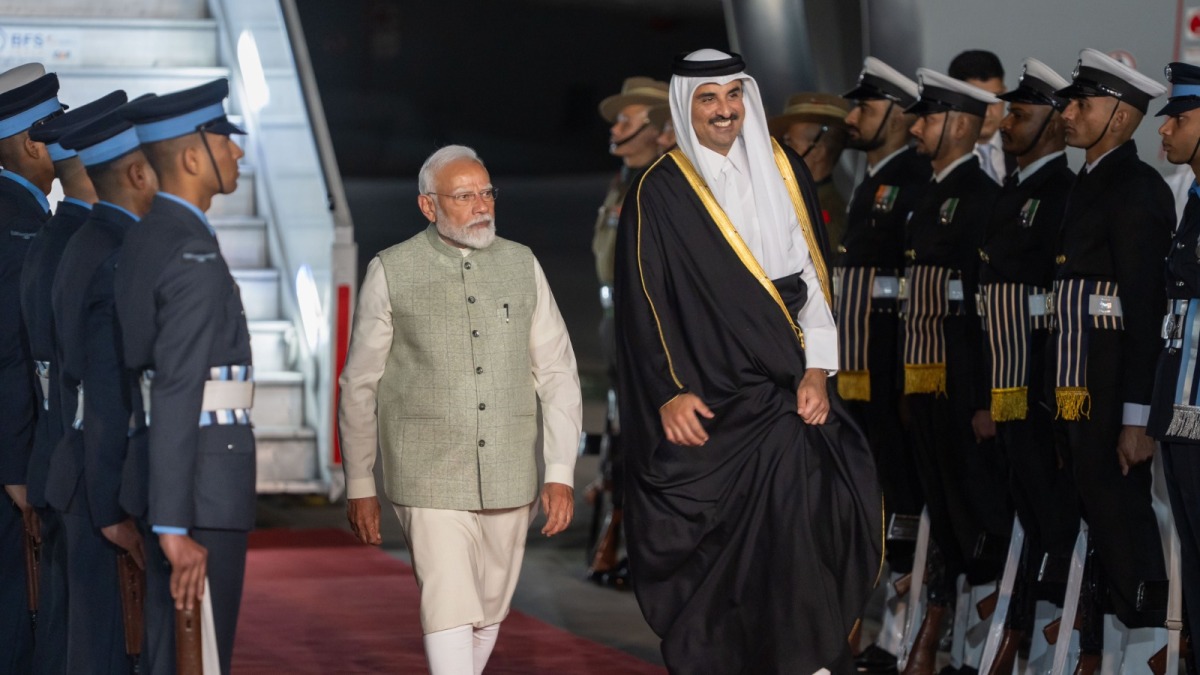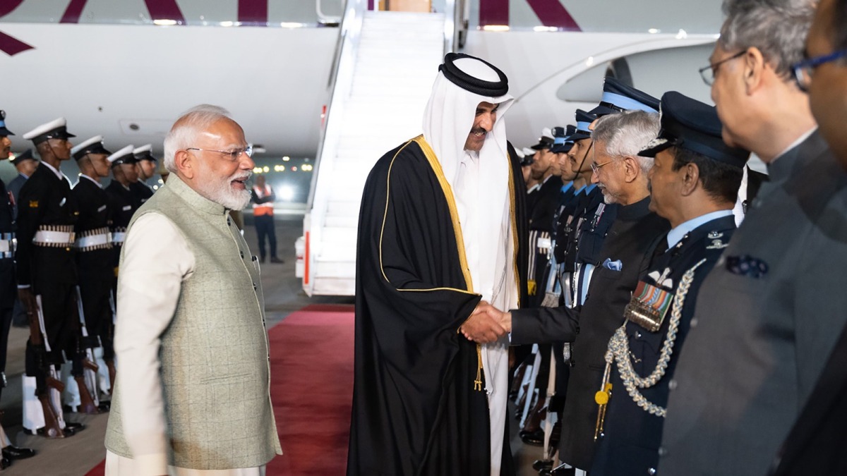 HH the Amir was welcomed - upon arrival at Palam Air Base - by Prime Minister HE Narendra Modi, Minister of External Affairs HE Dr. Subrahmanyam Jaishankar, Ambassador of the State of Qatar in New Delhi HE Mohammed bin Hassan Al Jaber and Ambassador of the Republic of India in Doha HE Vipul. Also present were the Qatari embassy staff.