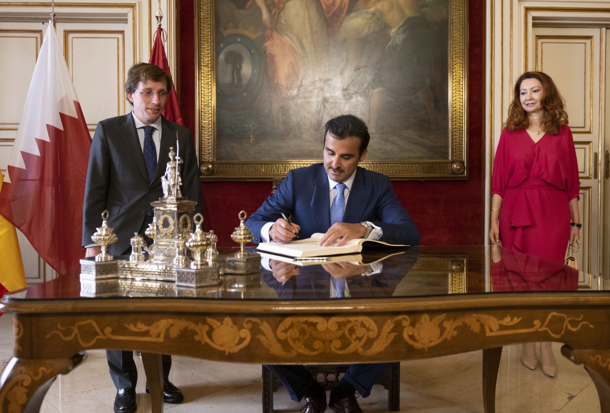 Mayor Martinez-Almeida expressed his delight in Madrid welcoming HH the Amir during his state visit, in order to present with the Golden Key of Madrid as a token of gratitude and appreciation from the Spanish people to the Qatari people. He added that Qatar has become an example to follow and praised the friendly nature of bilateral ties between the two countries.