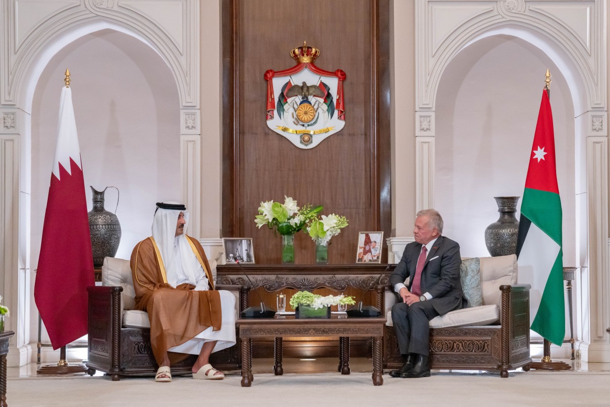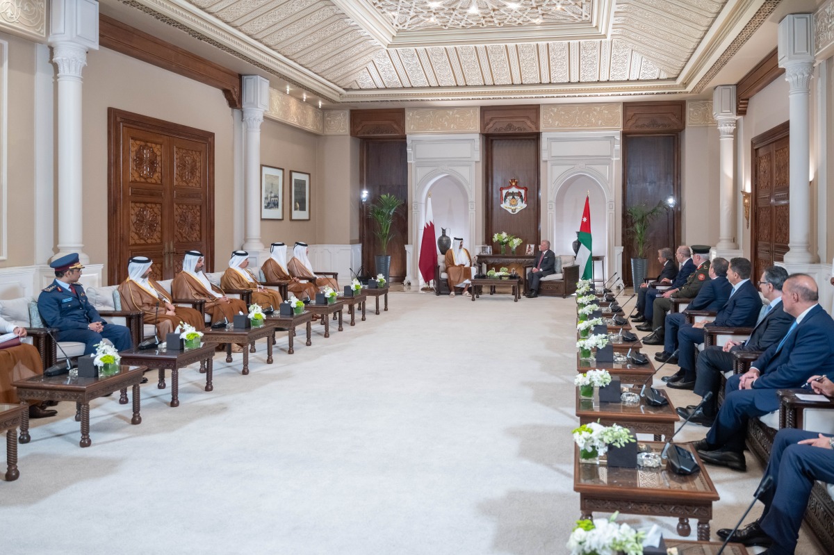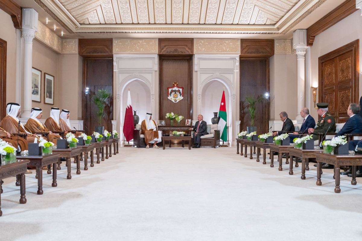 During the session, HH the Amir and HM King Abdullah II ibn Al Hussein expressed their satisfaction with the development and growth witnessed by the fraternal relations between the two brotherly countries, and affirmed their keenness to enhance and strengthen them in various fields, especially the economic and investment sectors.