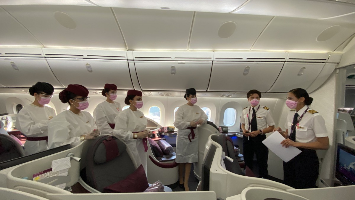 The @qatarairways all-woman crew has finished drawing a ribbon in the sky.