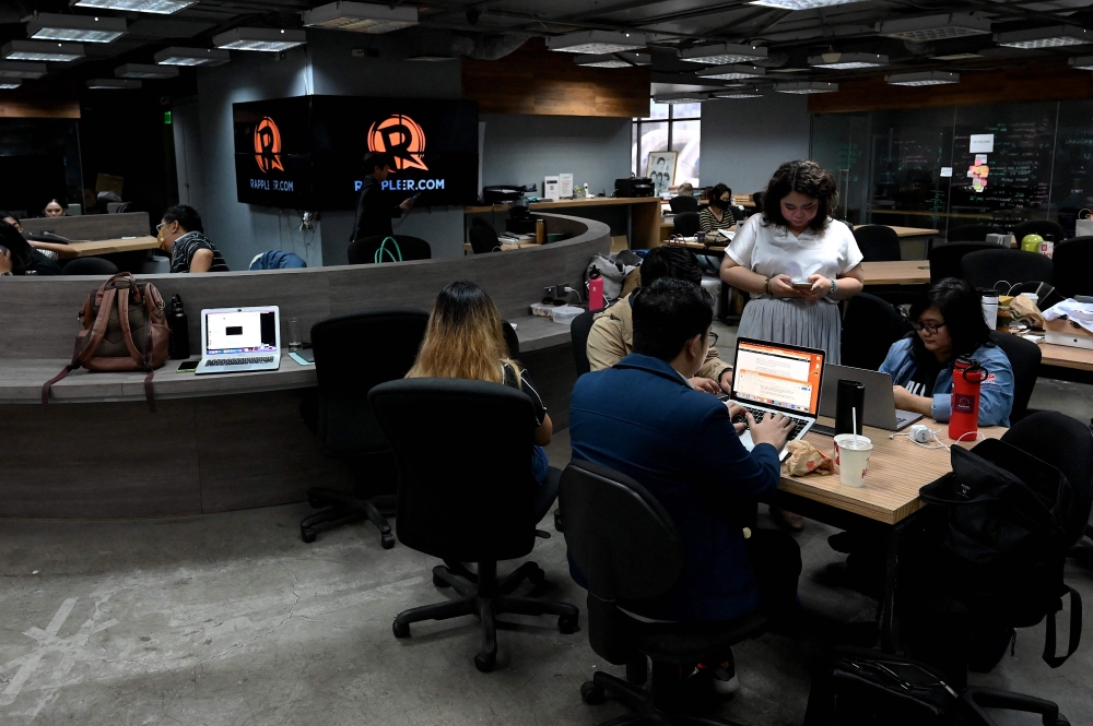 Reporters are seen inside the Rappler offices in Pasig, Metro Manila on January 18, 2023. (Photo by JAM STA ROSA / AFP)