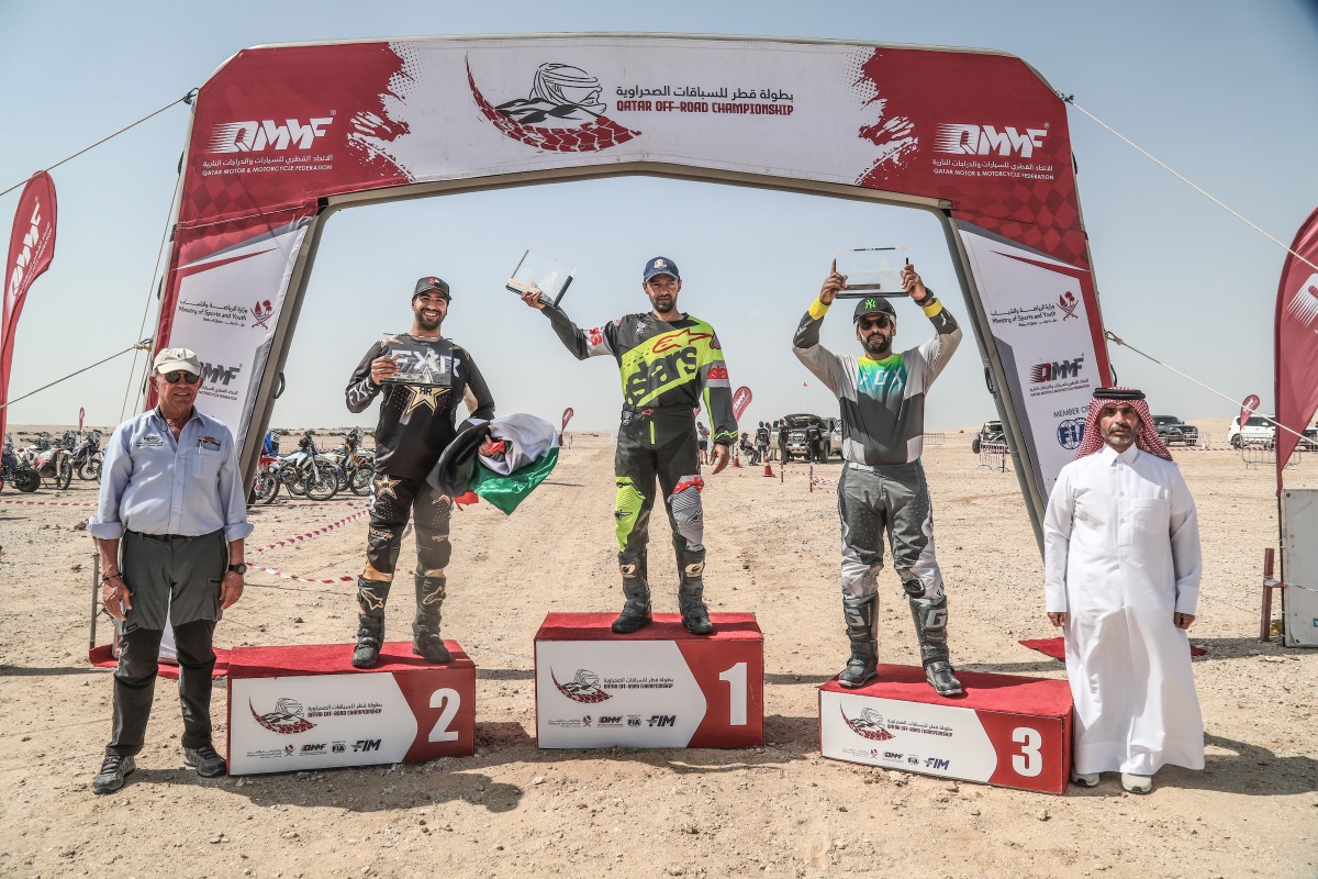 Three-time defending Motorcycle champion Mohamed Al Balooshi yesterday claimed victory in the second round of the Qatar Off-Road Championship. Riding a KTM 450 rally bike, the Emirati rider recorded a time of 2:01.06 seconds, narrowly beating his brother Sultan Al Balooshi by 1.10 seconds, with Marwan Al Rahmani finishing in third place. In the Class 2 / Quad division, Mansoor Al Suwaidi led the pack, followed by Abdulaziz Ahli and Mohamed Al Shamsi in second and third places, respectively. Gerard Roelant Lubbinge clinched first place in the Veteran Class 1, and Mohamed Al Shamsi won in Veteran Class 2.