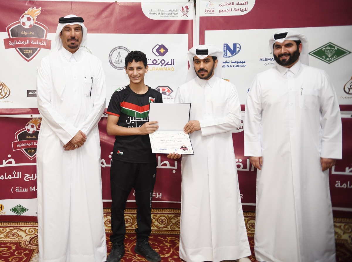 Al Nusoor claimed second place, winning silver medals and QR5,000, while Yarmouk took third, earning bronze medals and QR3,000. Individual awards included Faisal Khalifa Al Lanjawi of Al Adaam, who was named top scorer with 8 goals and a QR500 prize, Abdullah Hassan Al Khatib of Palestine, who was honoured as the best player, and Omar Tariq Al Meer of the Southern team, who won best goalkeeper. Tariq bin Ziyad’s team was recognised with the Ideal Team Award, receiving QR2,000.