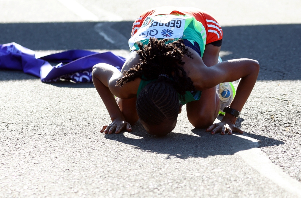 EUGENE, Oregon: Gotytom Gebreslase of Ethiopia patiently tucked behind her Kenyan rival until late in the race before surging ahead and sprinting to the win in the women's marathon at the world championships on Monday.