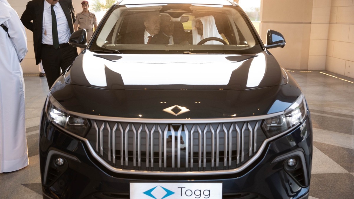 Doha, Qatar: The Amir HH Sheikh Tamim bin Hamad Al Thani received a gift from President of the Republic of Turkiye HE President Recep Tayyip Erdogan at Lusail Palace this evening, consisting of two Turkish-made "Togg" automobiles, as an expression of pride in the close strategic relations between the two countries and its two brotherly peoples.