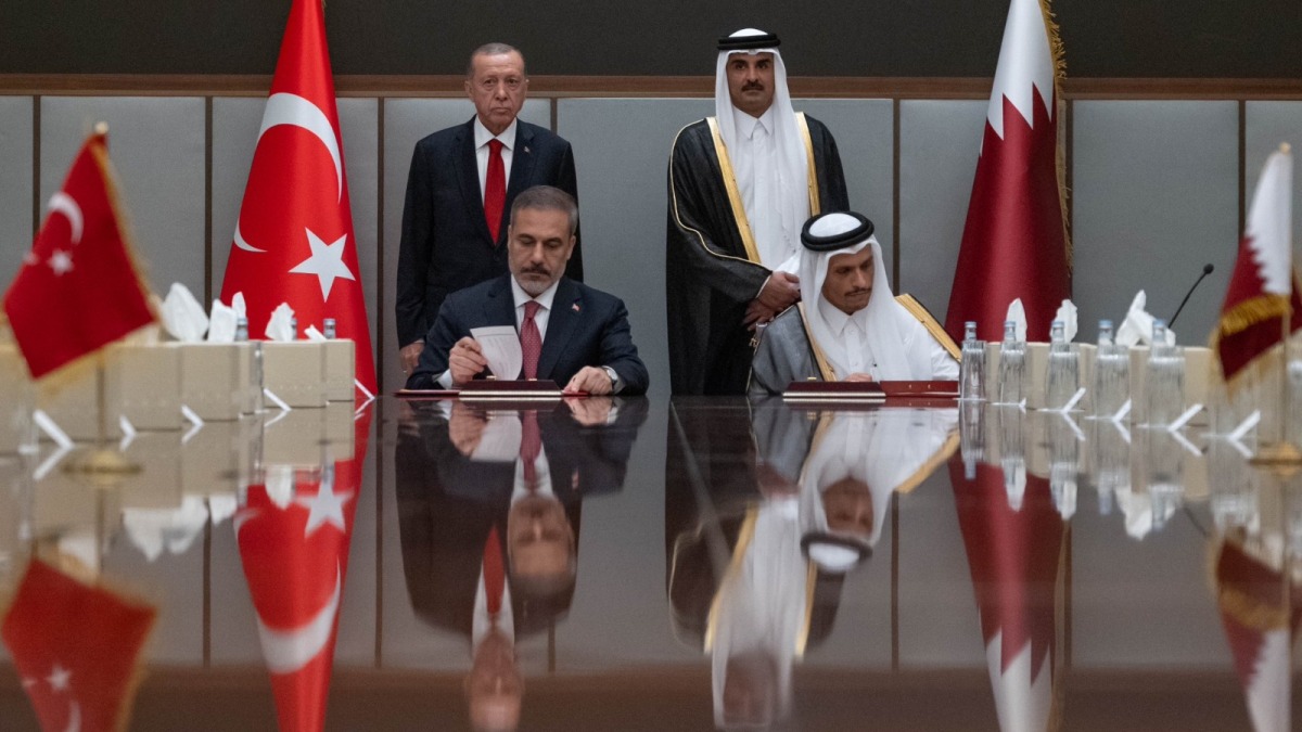 HH the Emir and HE the Turkish President also witnessed the signing of the joint statement between the State of Qatar and the Republic of Turkiye on the occasion of the 50th anniversary of the establishment of Qatari-Turkish diplomatic relations.