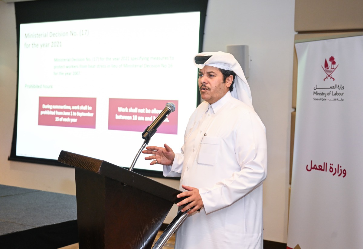 Doha: The Ministry of Labour, in collaboration with Ministry of Public Health and Qatar Red Crescent, conducted on Thursday an awareness workshop for motorcycle drivers in delivery companies to introduce them to the Ministry's e-services, raise their awareness on preventing workplace injuries and heat stress, and enhance their road safety awareness.