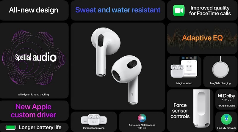 Meanwhile, Apple's new AirPods are sweat- and water-resistant for use with workouts and will have some sound features previously found in the higher-end AirPods Pro, Apple said during the launch event. Apple said the new AirPods will cost $179 and start shipping next week.