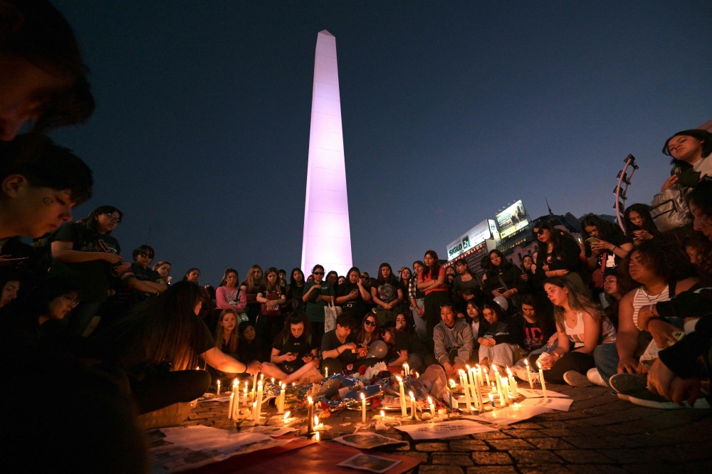 Fans light candles as they pay tribute to the late British singer Liam Payne at the Obelisco in Buenos Aires on October 17, 2024. Photo by JUAN MABROMATA / AFP