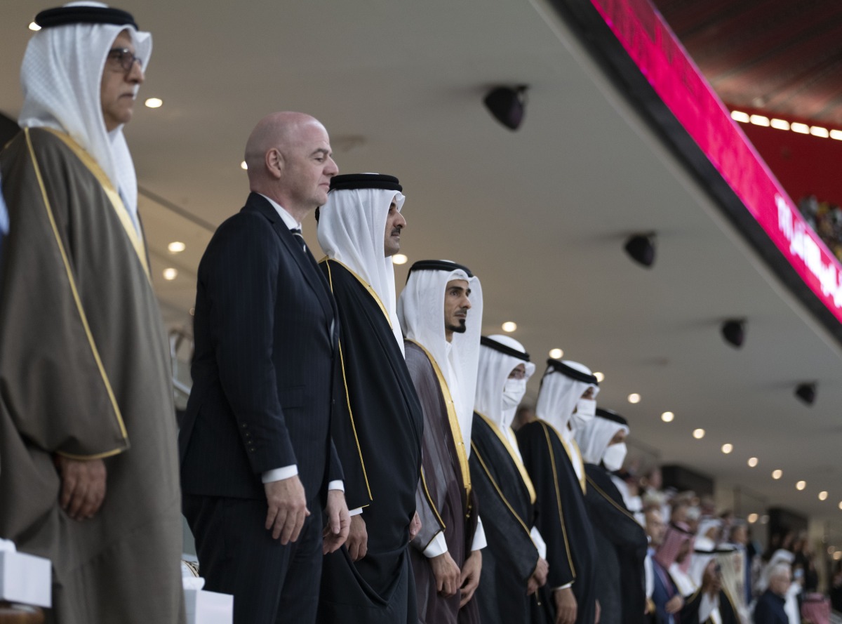 Doha: The Amir H H Sheikh Tamim bin Hamad Al Thani attended the closing ceremony of the FIFA Arab Cup Qatar 2021, at Al Bayt Stadium this evening.
