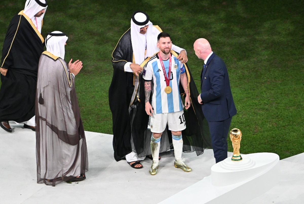 Argentina players celebrate after winning the FIFA World Cup Qatar 2022 at the Lusail Stadium in Lusail, Qatar, on December 18, 2022. Photos: Abdul Basit / The Peninsula
