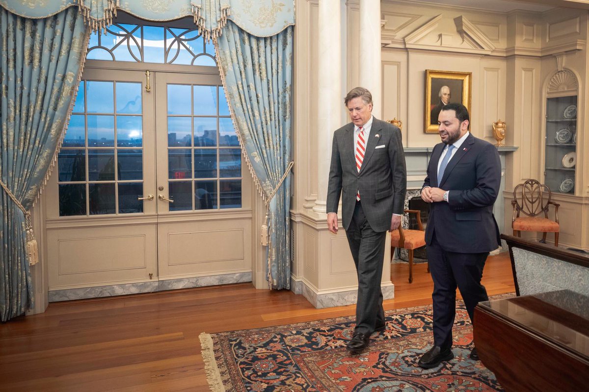 Washington: Minister of State at the Ministry of Foreign Affairs HE Dr. Mohammed bin Abdulaziz bin Saleh Al Khulaifi met with Deputy Secretary of State of the United States of America HE Christopher Landau, on the sidelines of the seventh strategic dialogue between the two countries, which is being held in Washington, D.C.