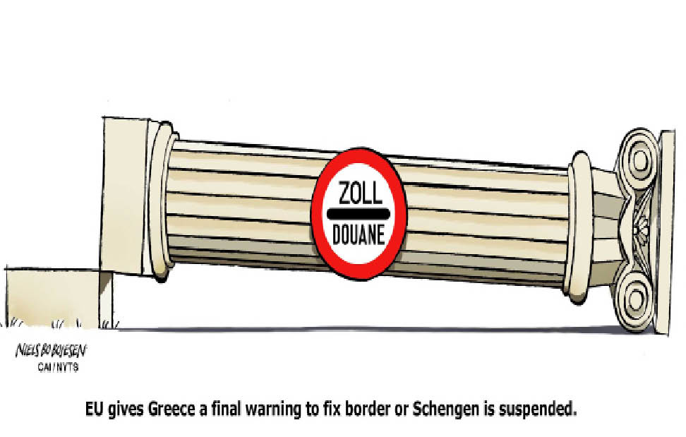 Group: ViewsMideast Credit: TOM Source: Trouw - Amsterdam, Netherlands Keywords: COLOR TURKEY SYRIA EUROPEAN UNION REFUGEES DEAL MIGRANT CRISIS BARBED WIRE 031716 Provider: CartoonArts International / The New York Times Syndicate