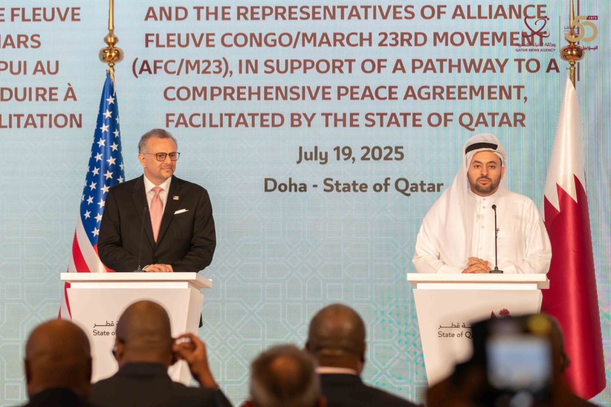 Doha: The State of Qatar hosted Saturday in Doha the signing ceremony of a Declaration of Principles between the Government of the Democratic Republic of the Congo and the Congo River Alliance/March 23 Movement, in a step considered a significant development in efforts aimed at achieving peace and stability in the eastern region of the Congo.