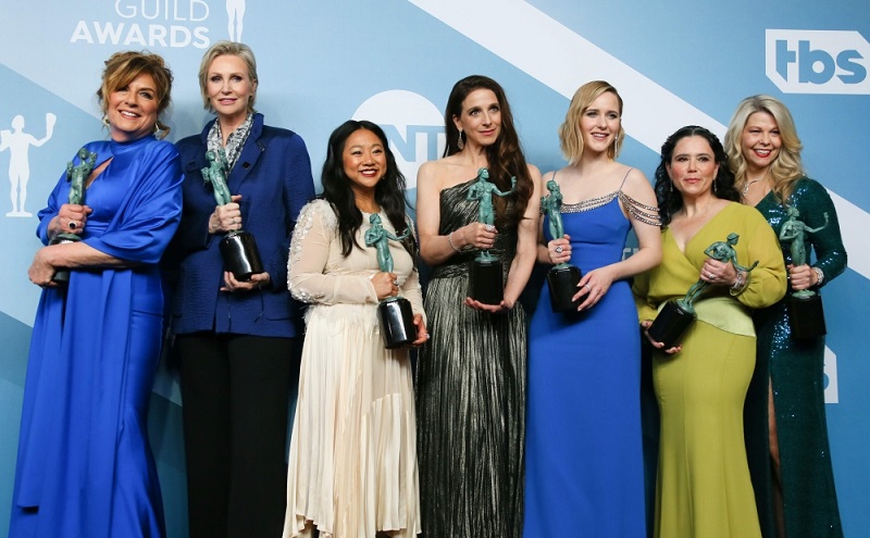 Comedy "The Marvelous Mrs Maisel" and British royal drama "The Crown" took the prizes for their TV ensemble casts. But "Mrs Maisel" actress Alex Borstein said the comedy prize should have gone to quirky British comedy "Fleabag."