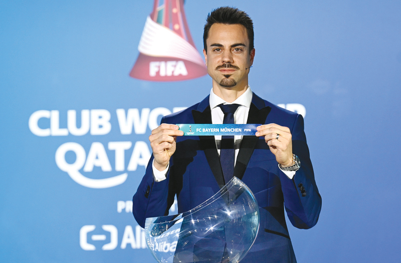 Former Swiss footballer Diego Benaglio draws FC Bayern Muenchen during the FIFA Club World Cup Qatar 2020 Draw in Zurich, yesterday. Pic: FIFA