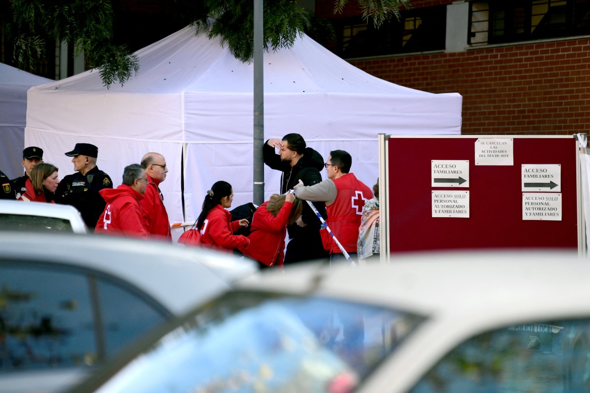 Psychologists arrive at the emergency center set near the site where a high-speed Iryo train derailed and was hit by another train as rescue efforts continue in Adamuz, southern Spain, on January 19, 2026. Photo by CRISTINA QUICLER / AFP
