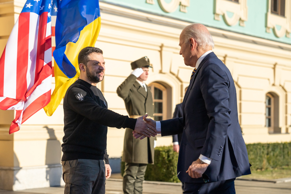 Biden delivered remarks and met with Zelensky at Mariinsky Palace to announce an additional half-billion dollars in U.S. assistance and to reassure Ukraine of American and allied support as the conflict continues.