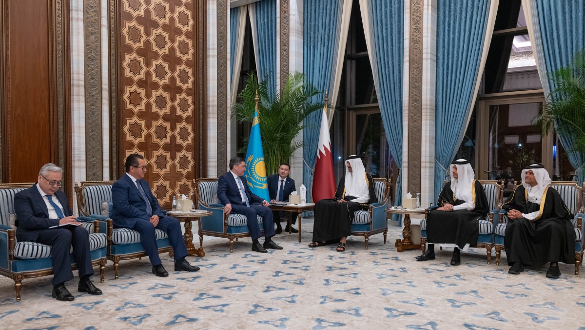 Doha, Qatar: The Amir HH Sheikh Tamim bin Hamad Al Thani met at his office in Lusail Palace on Wednesday with Prime Minister of the Republic of Kazakhstan HE Olzhas Bektenov on the occasion of his visit to the country, along with his accompanying delegation.