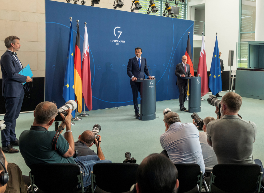 Berlin: The Amir HH Sheikh Tamim bin Hamad Al-Thani expressed his happiness at visiting the Federal Republic of Germany and his talks with German Chancellor HE Olaf Scholz as part of His Highness working visit to Germany.