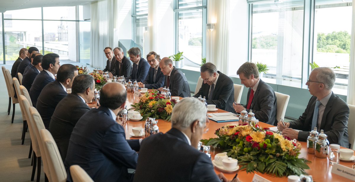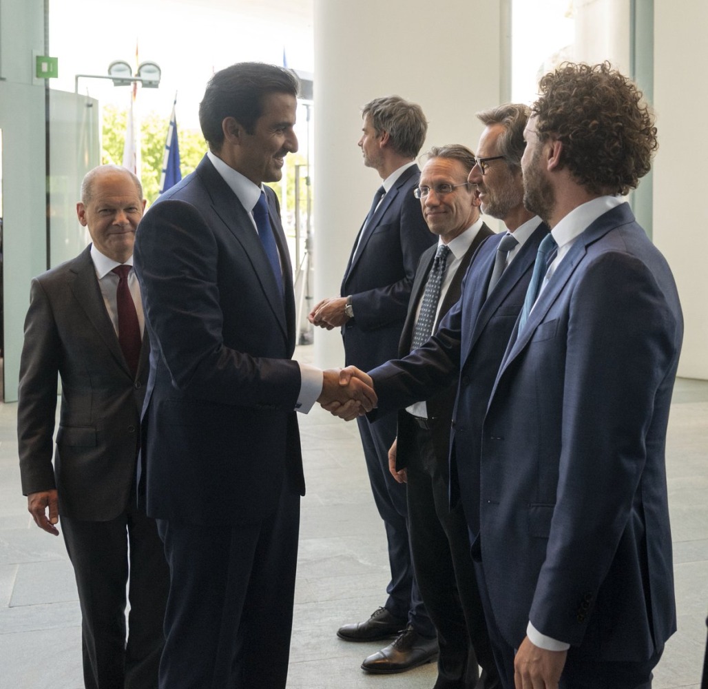 Berlin: The Amir HH Sheikh Tamim bin Hamad Al-Thani and Chancellor of the Federal Republic of Germany HE Olaf Scholz, held this afternoon, an official session of talks at the Chancellery in the capital, Berlin.