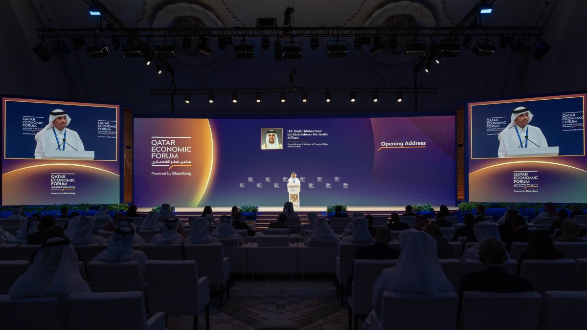 Doha, Qatar: The Amir HH Sheikh Tamim bin Hamad Al-Thani patronized the opening of the fifth edition of the Qatar Economic Forum, Powered by Bloomberg, held under the theme "The Road to 2030: Transforming the Global Economy," at Katara Towers - Raffles and Fairmont Hotels - on Tuesday morning.