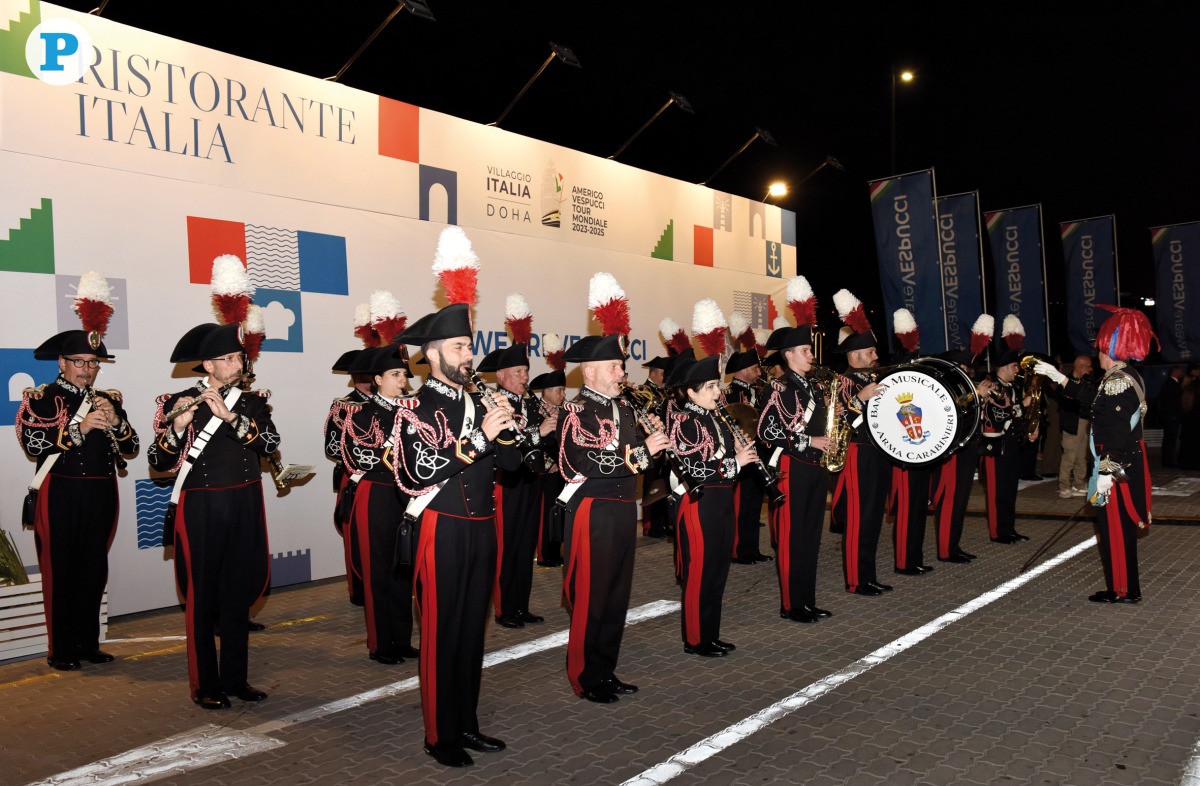 The Arma Carablnieri band performing during the opening of a temporary vegetable garden as part of Villaggio Italia, an exhibition showcasing Italian excellence along with Amerigo Vespucci’s stay in Doha, yesterday. Pic: Salim Matramkot/The Peninsula
