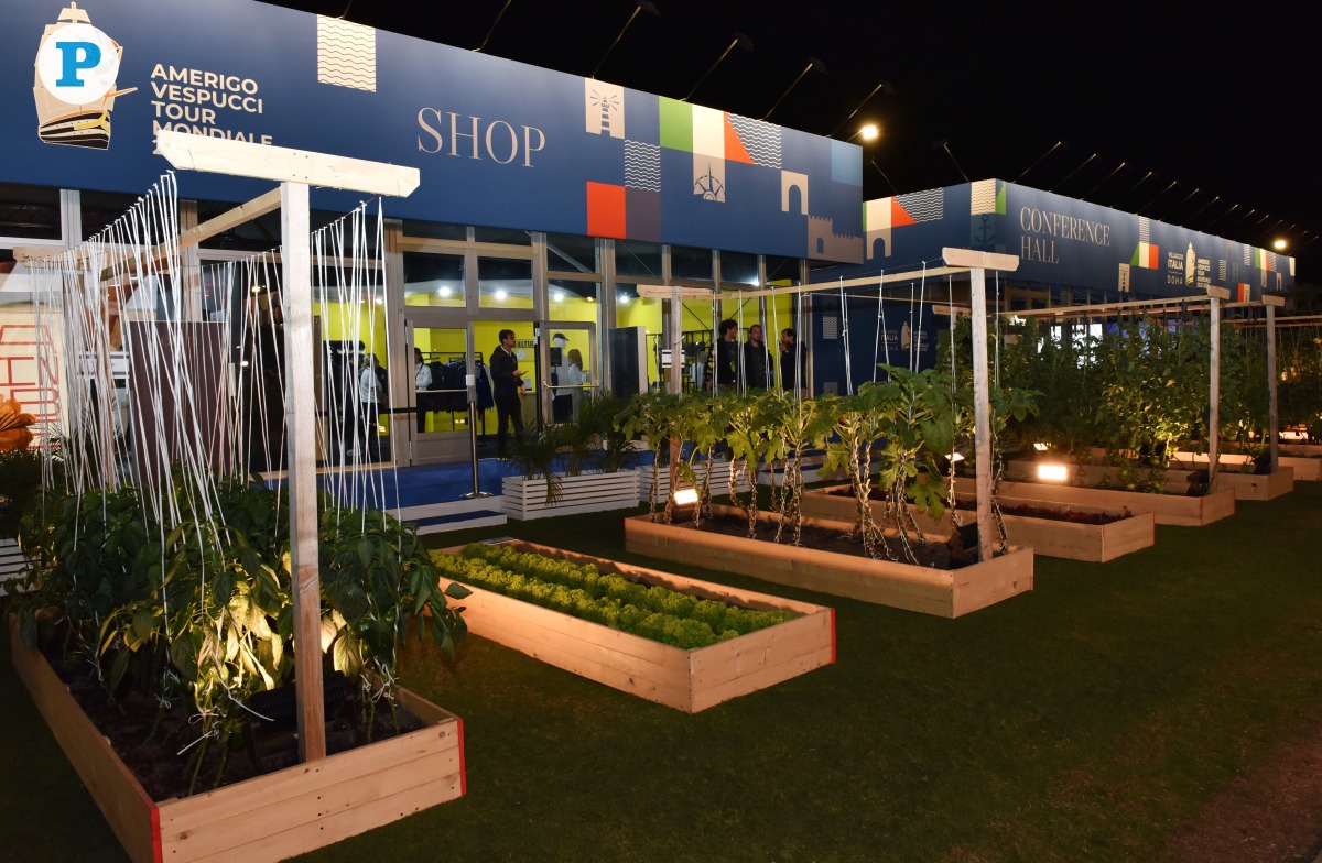 The temporary vegetable garden is part of Villaggio Italia, an exhibition showcasing Italian excellence along with Amerigo Vespucci’s stay in Doha. It highlights the ship’s global journey as a symbol of Italy’s values and a display of the country’s top achievements, contributing to both the economy and the spread of Italian culture.