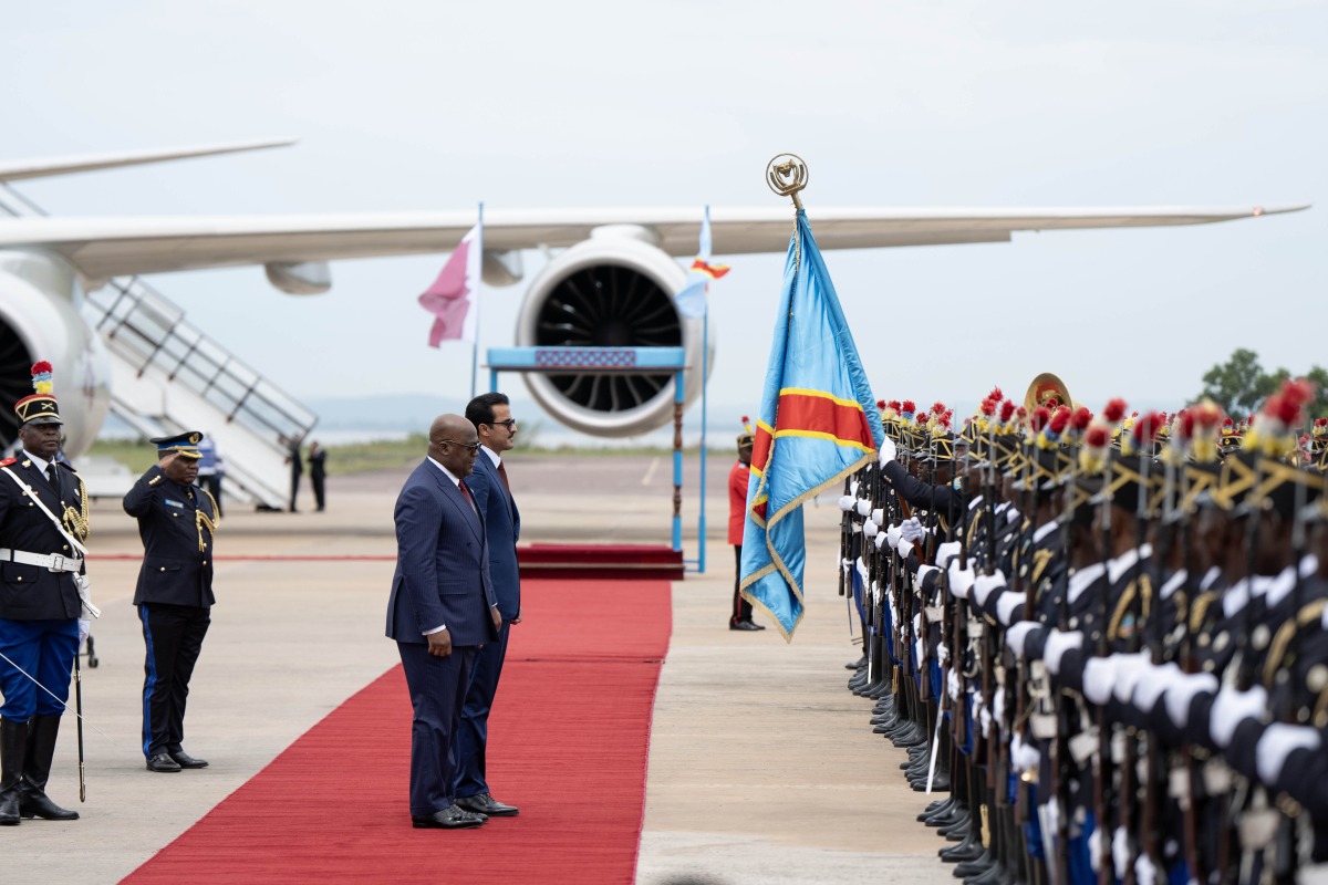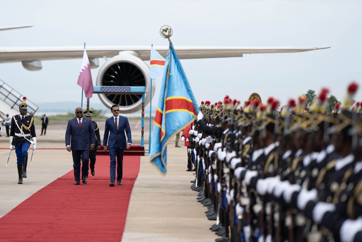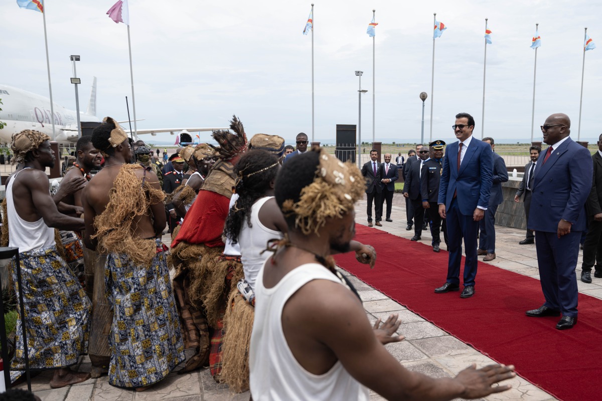 Also present to welcome HH the Amir were President of the Senate HE Jean-Michel Sama Lukonde Kyenge, President of the National Assembly HE Aime Boji Sangara, Minister of Foreign Affairs, International Cooperation and Francophonie of the Democratic Republic of Congo HE Therese Kayikwamba Wagner.