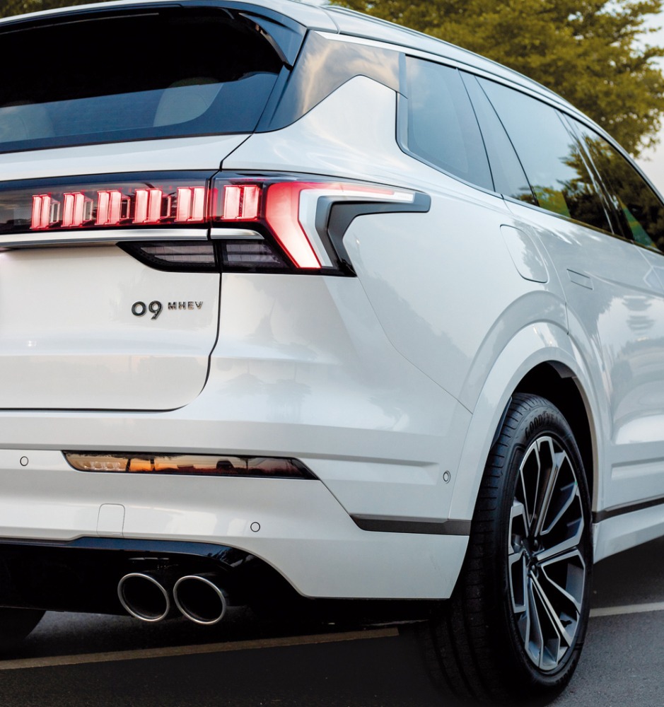The 09 shines with its Urban Coast Front, inspired by the dynamic yet serene coastlines of metropolises. The front fascia ingeniously adopts the design of dual decorative lines and effortlessly fuses power and elegance.