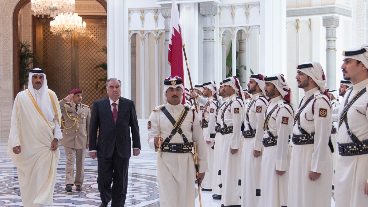 Doha, Qatar: The Amir HH Sheikh Tamim bin Hamad Al-Thani held a session of official talks at Lusail Palace on Monday with President of the friendly Republic of Tajikistan HE Emomali Rahmon.