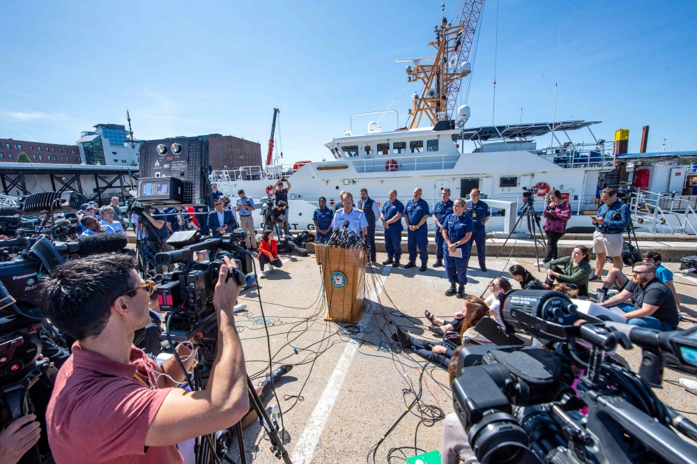 US Rear Admiral John Mauger, the First Coast Guard District commander, speaks at a press conference at the US Coast Guard Base Boston in Boston, Massachusetts, on June 22, 2023. (Photo by Joseph Prezioso / AFP)