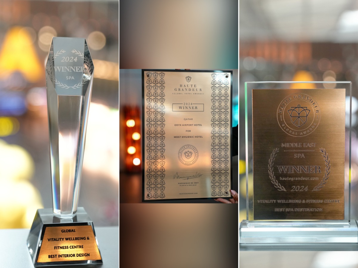 Doha, Qatar: Hamad International Airport (DOH) announced that its Oryx Airport Hotel has been recognised as the “Most Hygienic Hotel in Qatar” at the esteemed Haute Grandeur Hotel Awards 2024. This prestigious accolade reflects the hotel's dedication to delivering world-class hospitality. In addition to this top recognition, the hotel also collected Best Fitness Spa (Global), Best Interior Design (Global), Best Spa Destination in the Middle East and Best Spa Team in the Middle East for its Vitality Wellbeing & Fitness Center.