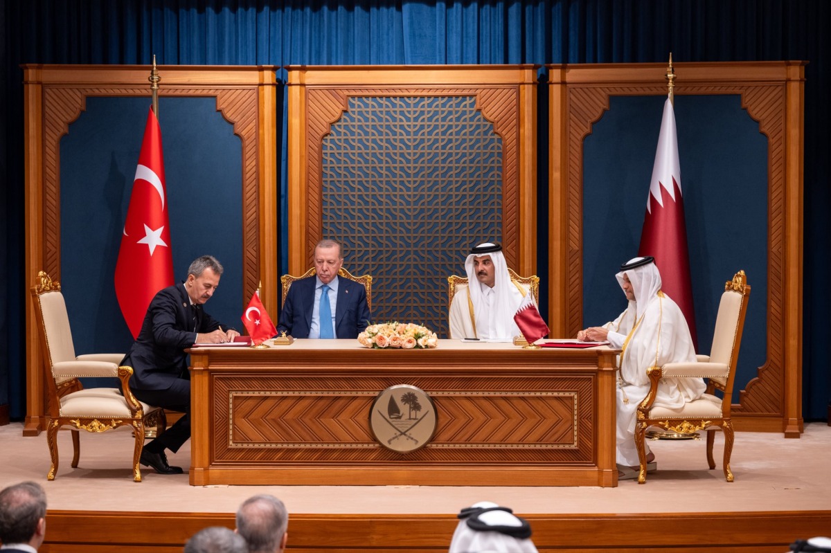 Doha, Qatar: The Amir HH Sheikh Tamim bin Hamad Al-Thani and President of the Republic of Turkiye HE Recep Tayyip Erdogan witnessed on Wednesday the signing of several memoranda of understanding (MoUs) between the two countries at the Amiri Diwan.