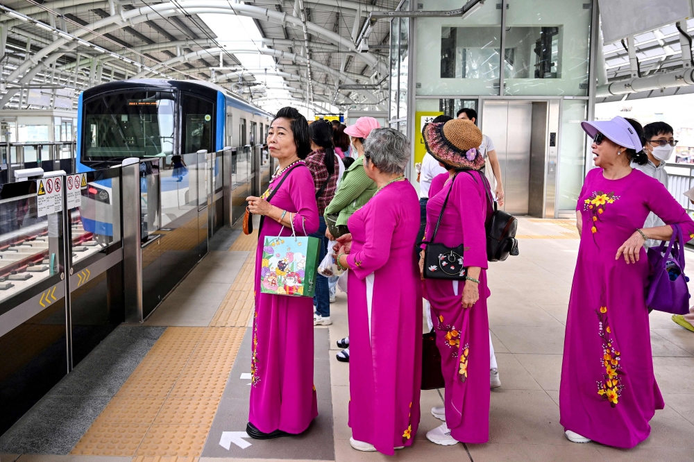 Huge queues spilled out of every station along the $1.7 billion line that runs almost 20 kilometres (12 miles) from the city centre -- with women in traditional "ao dai" dress, soldiers in uniform and couples clutching young children waiting excitedly to board.