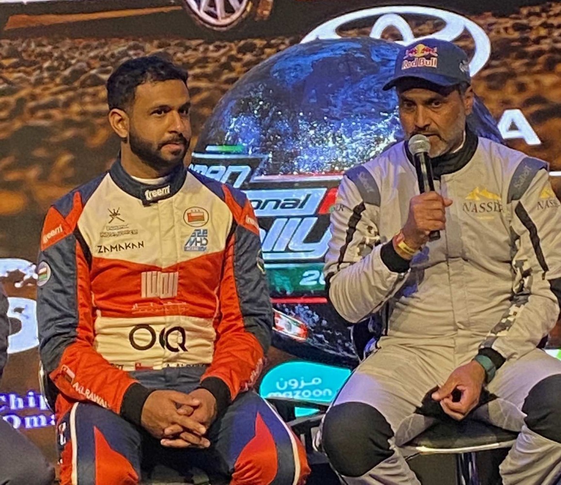 Qatar’s Nasser Saleh Al Attiyah and Oman’s Abdullah Al Rawahi during the pre-event press conference.