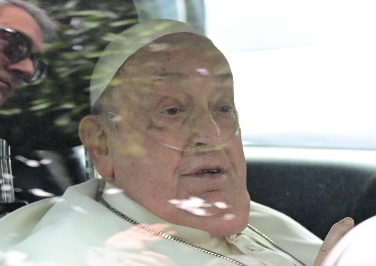 The Argentine pontiff left by car wearing a cannula -- a plastic tube tucked into his nostrils which delivers oxygen -- an indication of the continued fragility of his health.