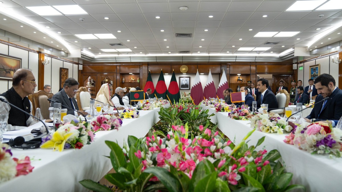 At the beginning of the session, the Prime Minister of Bangladesh welcomed His Highness the Amir and the accompanying delegation, praising the relations of friendship and cooperation between the two countries, which are nearly 50 years old, and the visit of His Highness, which is considered an important visit to strengthen relations between the two friendly countries, noting the role of the State of Qatar in resolving conflicts in the region.