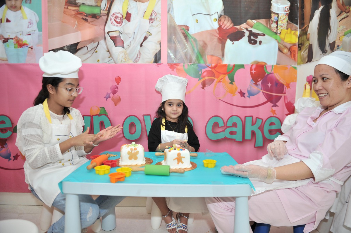 “I make cakes covered with white fondant, I give children each cake to create their own designs on top of these cakes. They chose their own colors and shapes to give them their own identity. We provide them with cake stencils, cutters, rolling stencils and many more items to make their cakes look beautiful. We provide these services on children birthday parties and celebrations,” said Moza Abdullah Al Abdul Jabbar, owner of Goody Maker.