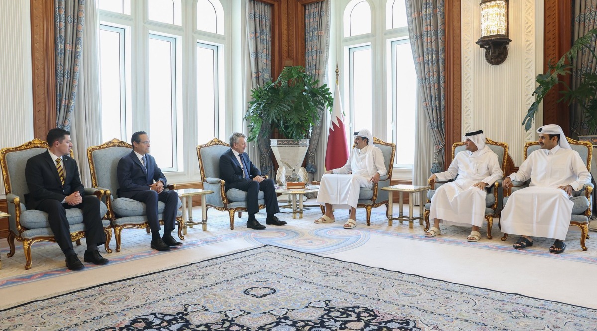 The Amir HH Sheikh Tamim bin Hamad Al Thani received in his office at the Amiri Diwan, Ben van Beurden, CEO of Shell Group, and the accompanying delegation on Sunday morning, who called on the Amir to greet on the occasion of the end of his tenure.