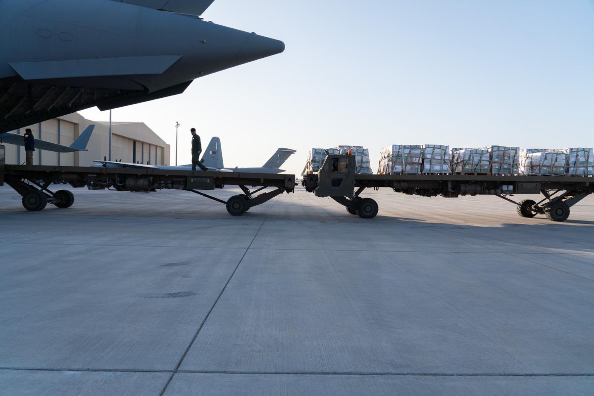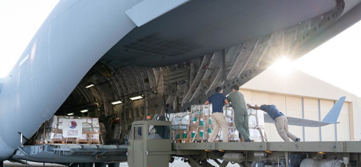 Doha, Qatar: A Qatar Armed Forces plane headed to the city of Al Arish in Egypt carrying 41 tonnes of food supplies provided by the Qatar Fund For Development (QFFD) in preparation for transporting it into Gaza.