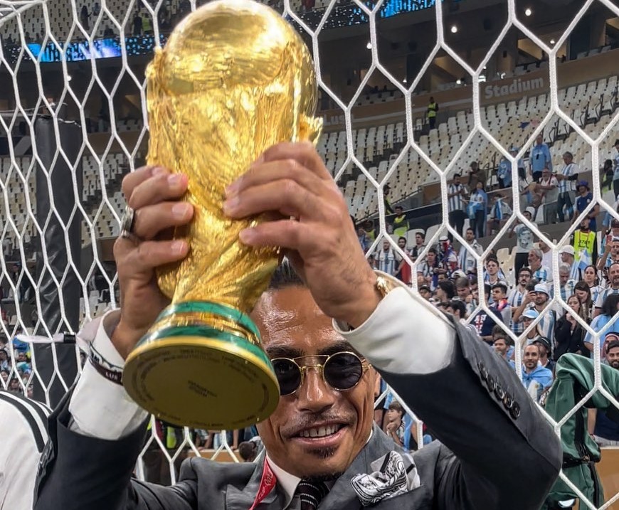 Salt Bae, whose real name is Nusret Gokce, was pictured holding and kissing the trophy after Argentina beat France in Sunday's final in Qatar.