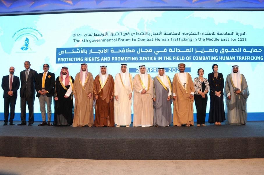 The forum, held under the theme "Protecting Rights and Promoting Justice in Combating Human Trafficking," brought together ministers and heads of specialised agencies from the Gulf Cooperation Council (GCC) member states, the Hashemite Kingdom of Jordan, the Arab Republic of Egypt, the United States of America, the League of Arab States, and the United Nations Office on Drugs and Crime.