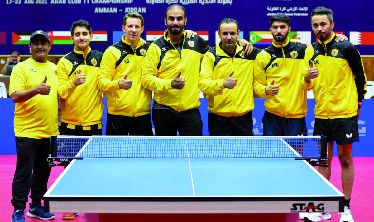 Qatar SC players and officials during the Arab Club Table Tennis Championships which concluded in Amman, Jordan, yesterday.