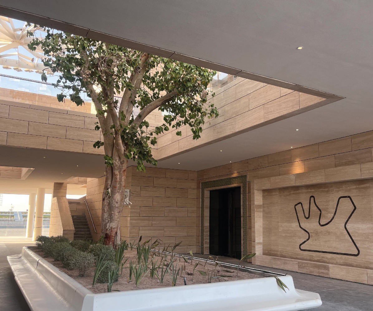 Installing the canopy of Al Majlis building as a single piece, weighing 68 tons, was a challenge in itself due to its large weight which required the use of a 400-ton crawler crane. This task required careful coordination and a specialised work team with high skills.