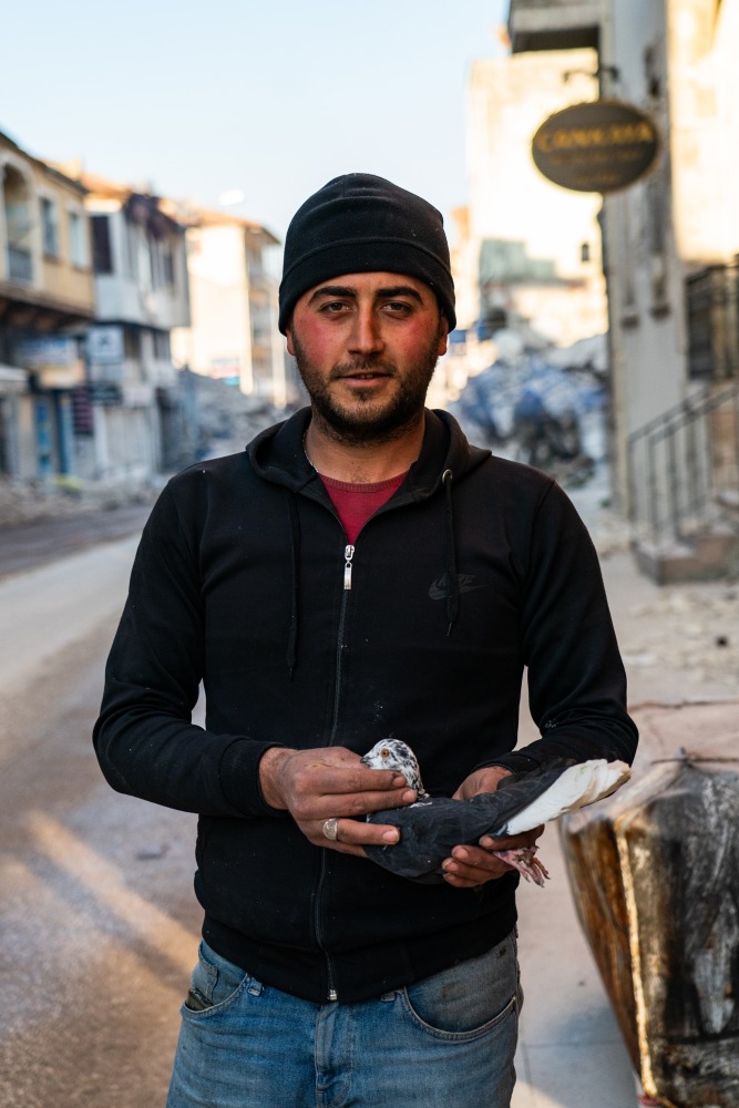 Ugur looked up at the roof where an old man, not really an uncle but a friend, stood looking down. The pigeon keeper fears his building may still fall, the young man explained.