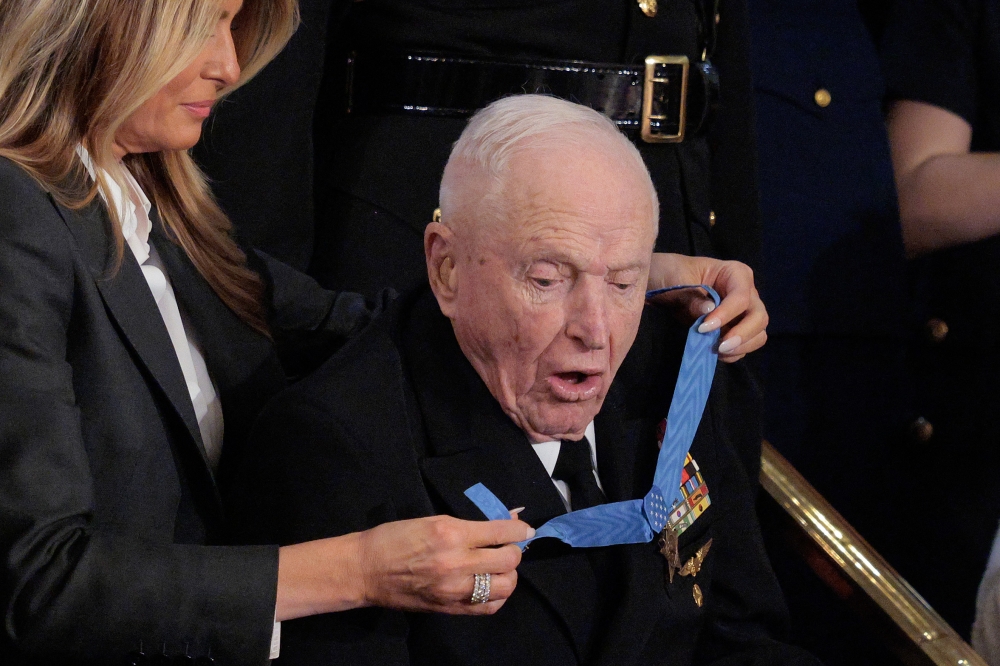 And he handed Medals of Honor -- the highest military award -- to a helicopter pilot wounded in January's attack to topple Venezuelan leader Nicolas Maduro and also to a 100-year-old Korean War veteran.