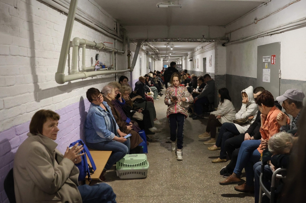 Local residents take cover in an underground shelter during a Russian missile attack in Kyiv early on April 24, 2025. (Photo by Stringer / AFP)