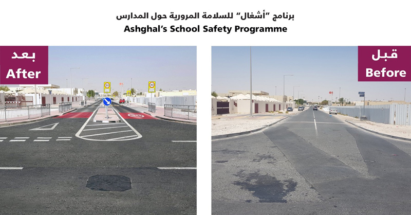 According to a study conducted by the Ministry of Education and Higher Education, Ashghal has coordinated with the Ministry of Interior and the National Road Safety Committee to identify school areas in need of development. This year priority was given to approximately 568 schools spread across various areas in Qatar.
