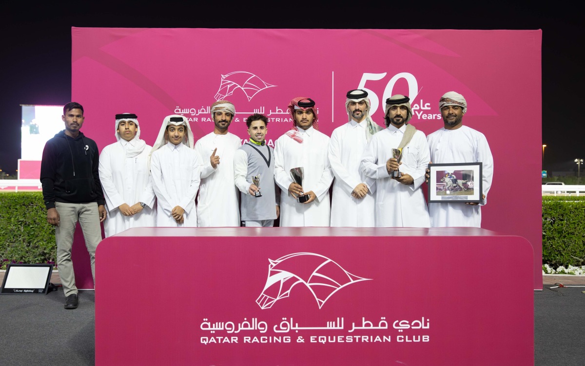 The winners of the Muaither Cup were honoured by Head of Racing Operations at Qatar Racing and Equestrian Club (QREC) Rashid Saed Adiba.